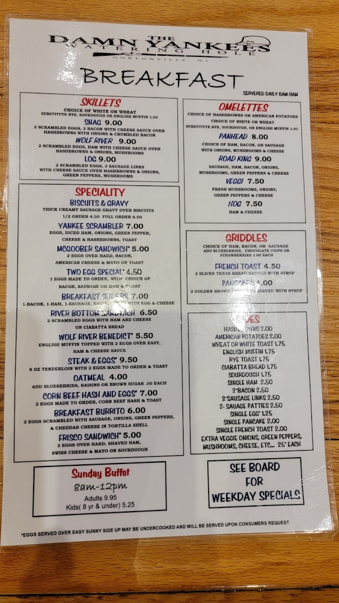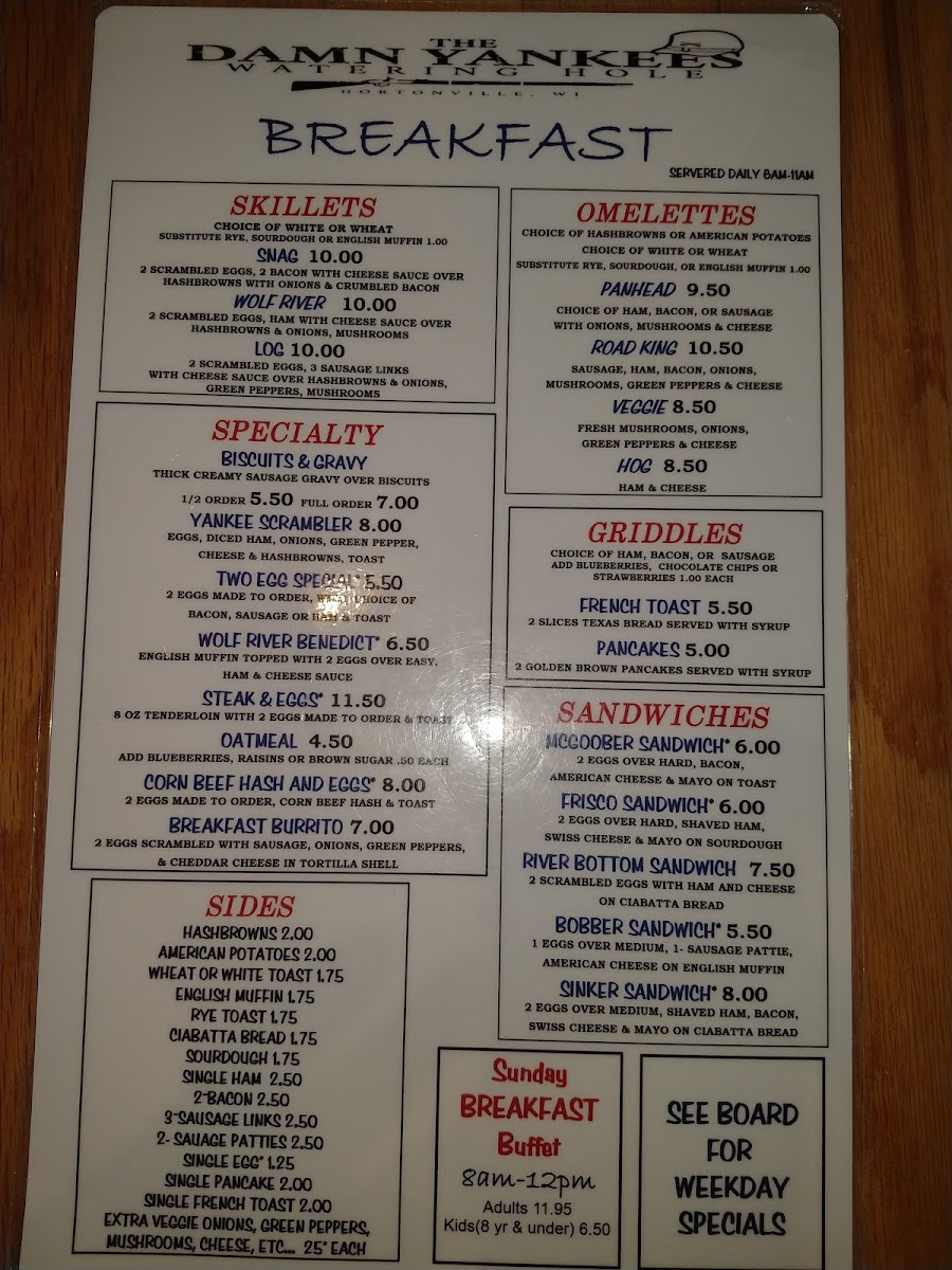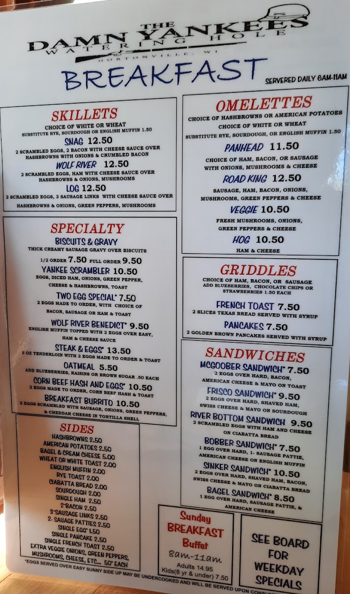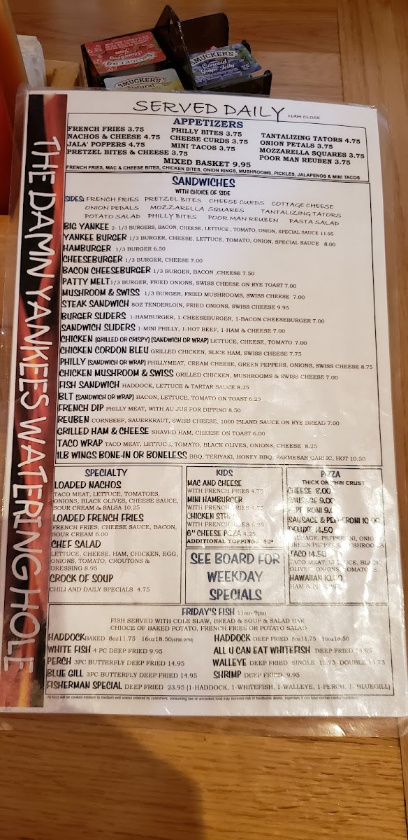 The menu at Damn Yankees Watering Hole offers a straightforward selection of casual bar and grill fare, perfectly suited for relaxed gatherings any time of day. Whether you're stopping in for a hearty breakfast or unwinding with friends over classic pub plates and comforting drinks, you'll find a variety of familiar favorites presented with a no-fuss approach.